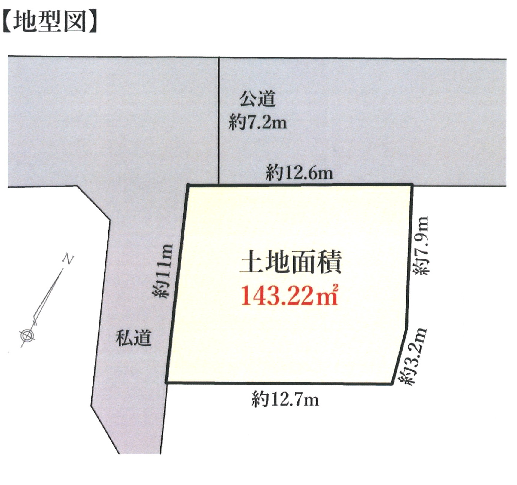 | 土地面積・権利・地目・都市計画 | 143.22㎡(約43坪) 所有権・宅地・市街化区域 |