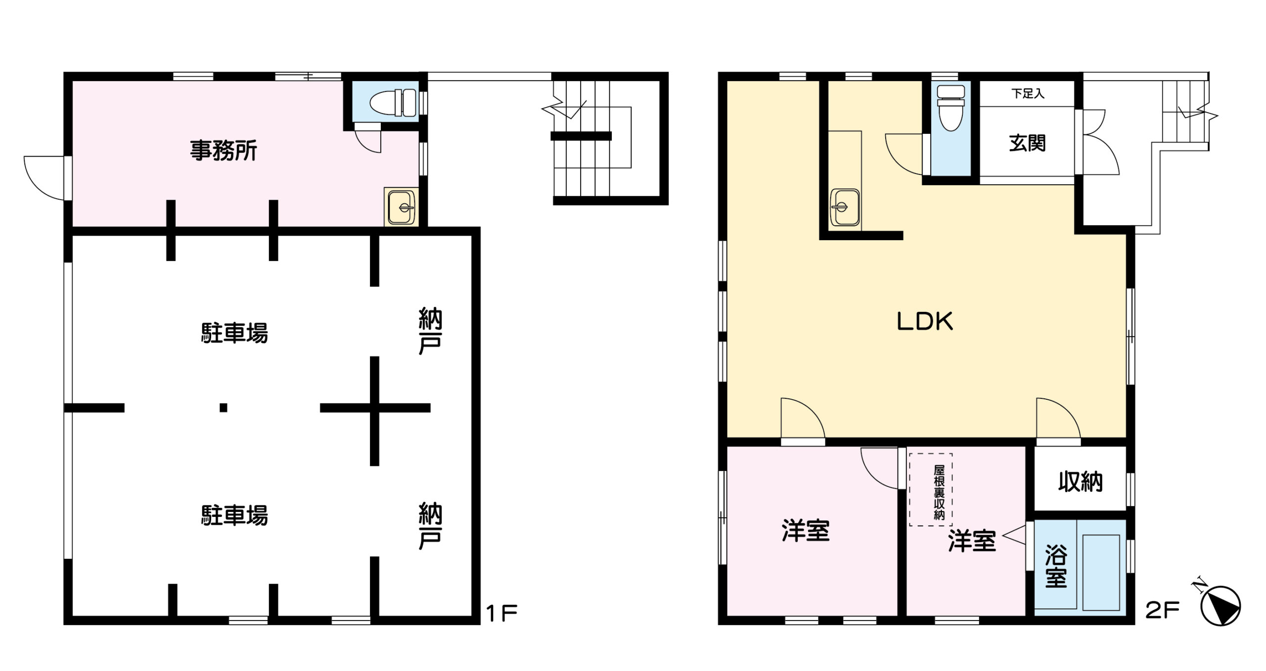 | 建物床面積・間取・築年月 | 134.14㎡(約40.5坪) 2SLDK+事務所 木造スレート葺2階建 平成16年6月築 |